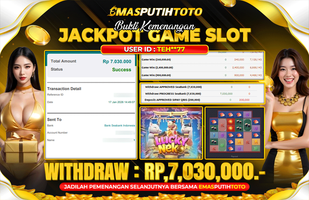 🎉 Selamat untuk USER ID:TEH**77 yang sukses membawa pulang Rp.7,030,000.-,dari permainan PG LUCKY NECKO💸