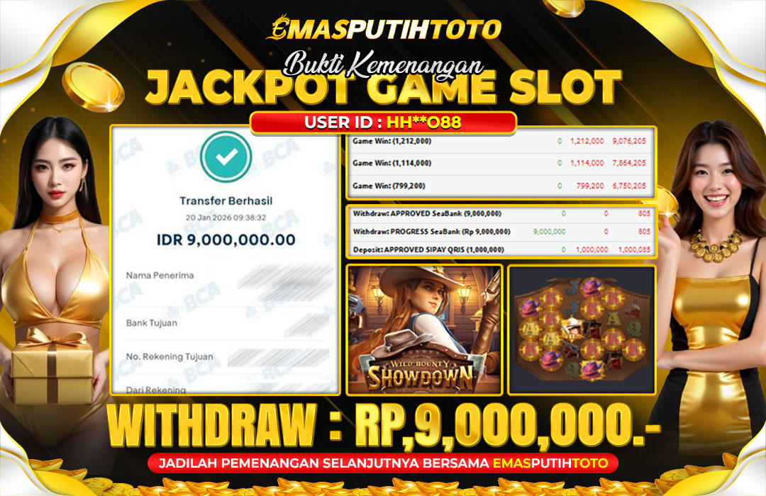 🎉 Selamat untuk USER ID:HH**088 yang sukses membawa pulang Rp.9,000,000.-,dari permainan PG – WILD BOUNTY SHOWDOWN